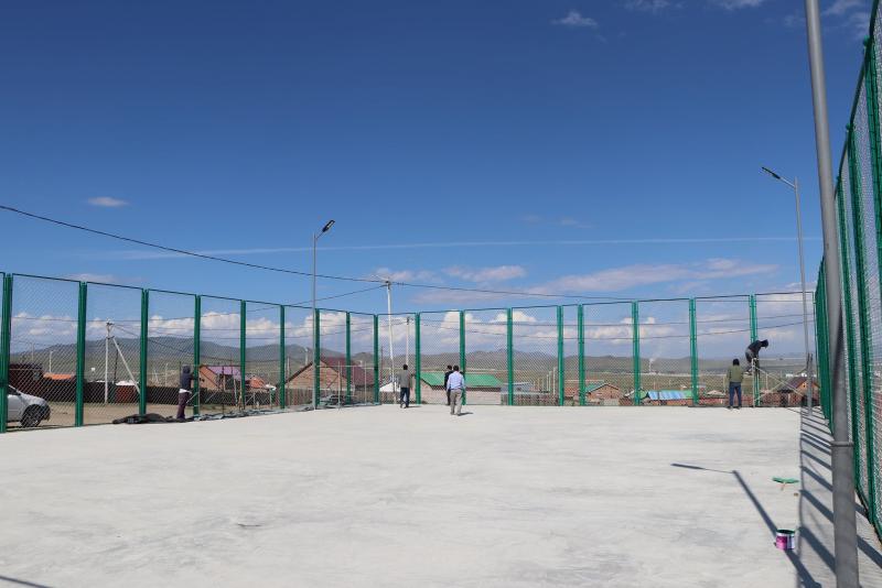 Тус сагсан бөмбөгийн талбайн тохижилтын ажил дуусах шатандаа орсон бөгөөд сагсны шийд, сандал зэргийг суурилуулах ажил үлдсэн гэдгийг гүйцэтгэгч компанийн зүгээс танилцууллаа.